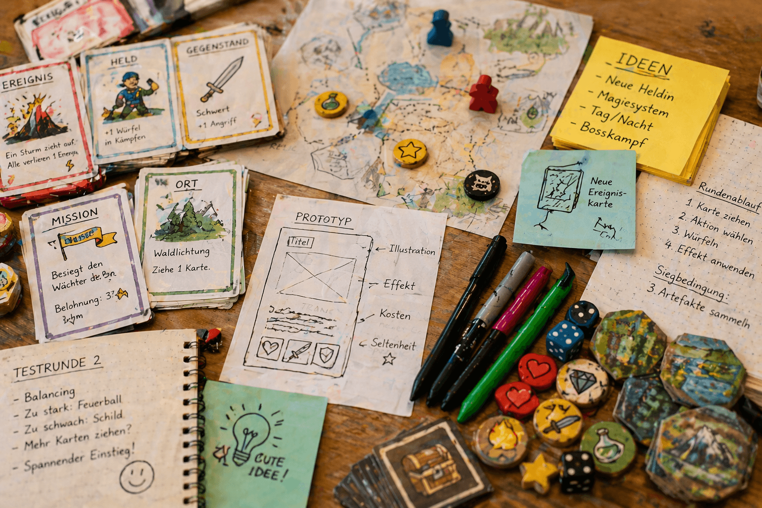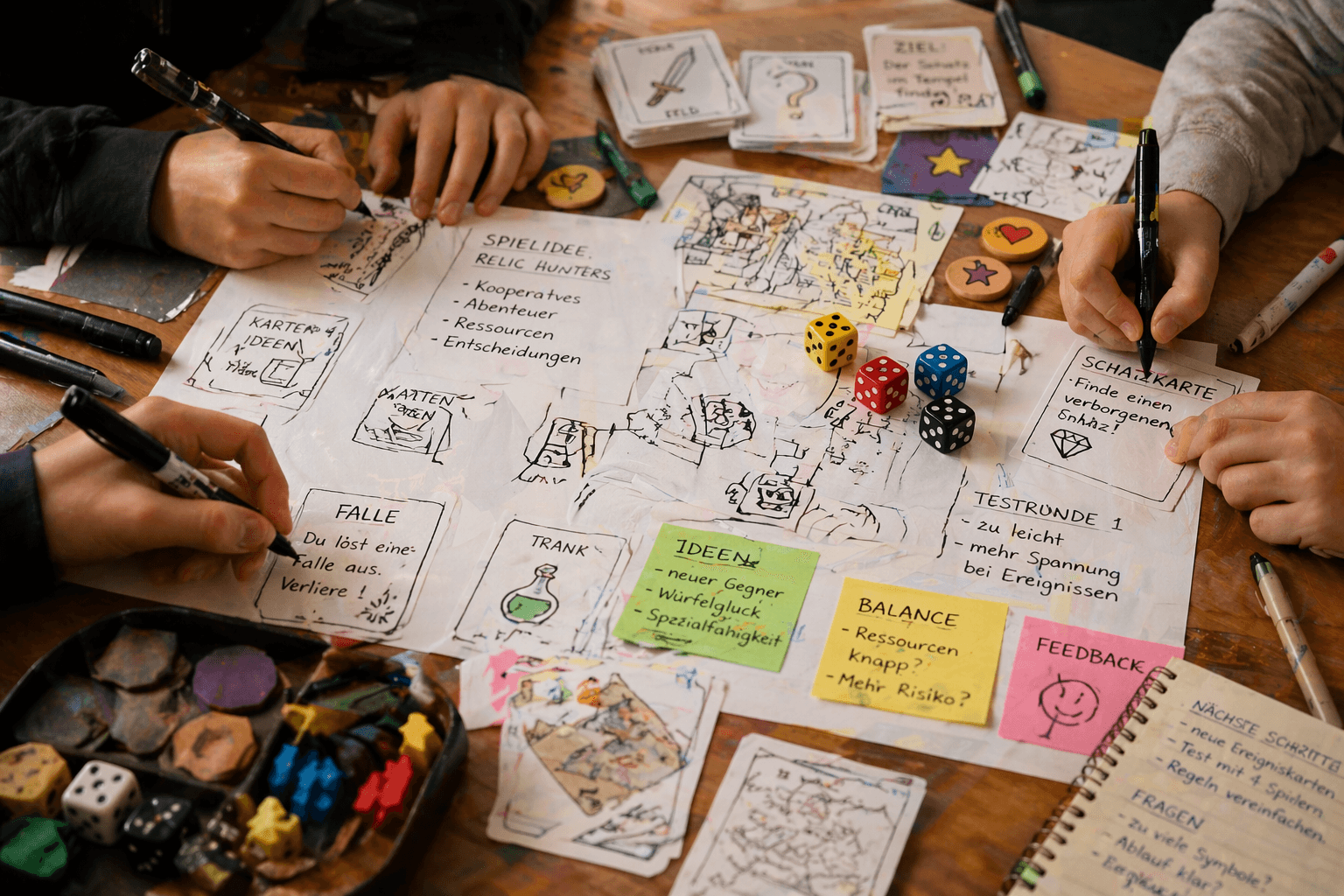 Wir verändern Regeln, Karten oder Abläufe – oder entwickeln aus dem Gelernten eigene Spielideen.